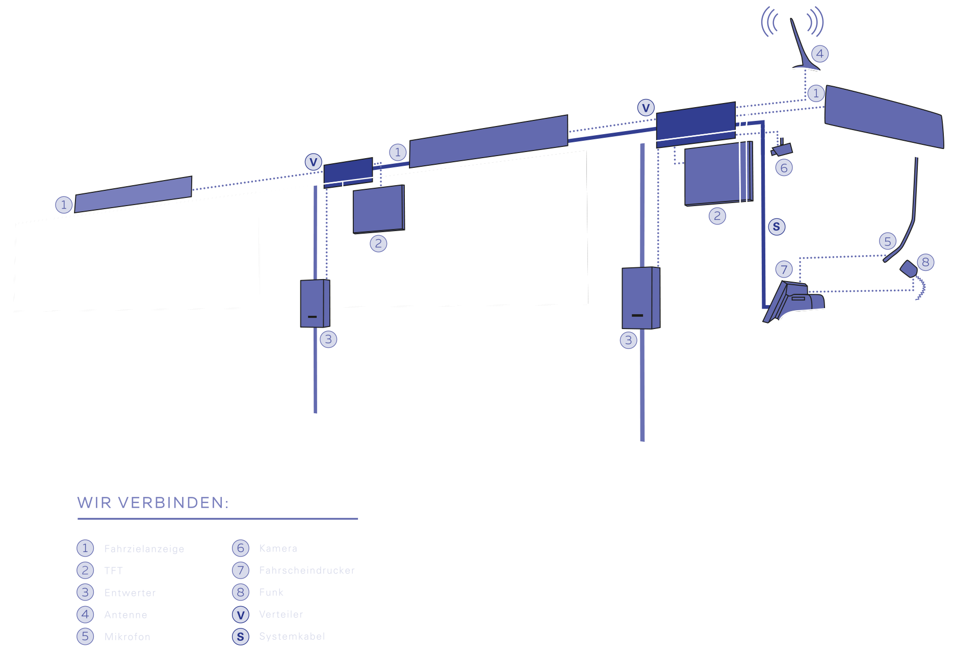 Herstellerungebunden installieren wir unterschiedlichste Technik von verschiedenen Anbietern in Bus und Bahn. Wir bieten Ihnen eine neutrale Beratung im Bereich ITCS/IBIS. Gleichzeitig entwickeln wir praxisnahe Lösungen und Erweiterungen, die sich aus unserer langjährigen Erfahrung als Verkabelungsdienstleister herausgebildet haben.